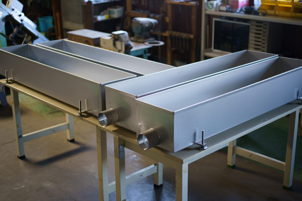 製缶工事とは、溶接を含めたさまざまな加工を行い、耐久性のある立体的な金属製品をつくることです。